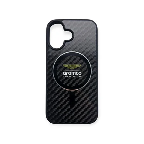 De Aston Martin iPhone 16 backcover combineert luxe carbonafwerking met een sportief ontwerp, inclusief het Aramco-logo, wat een stijlvolle uitstraling en functionaliteit biedt. Deze premium hoes biedt bescherming en een verfijnde look voor uw klanten die het beste willen voor hun iPhone 16.