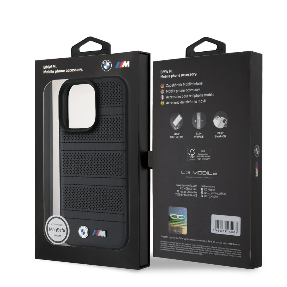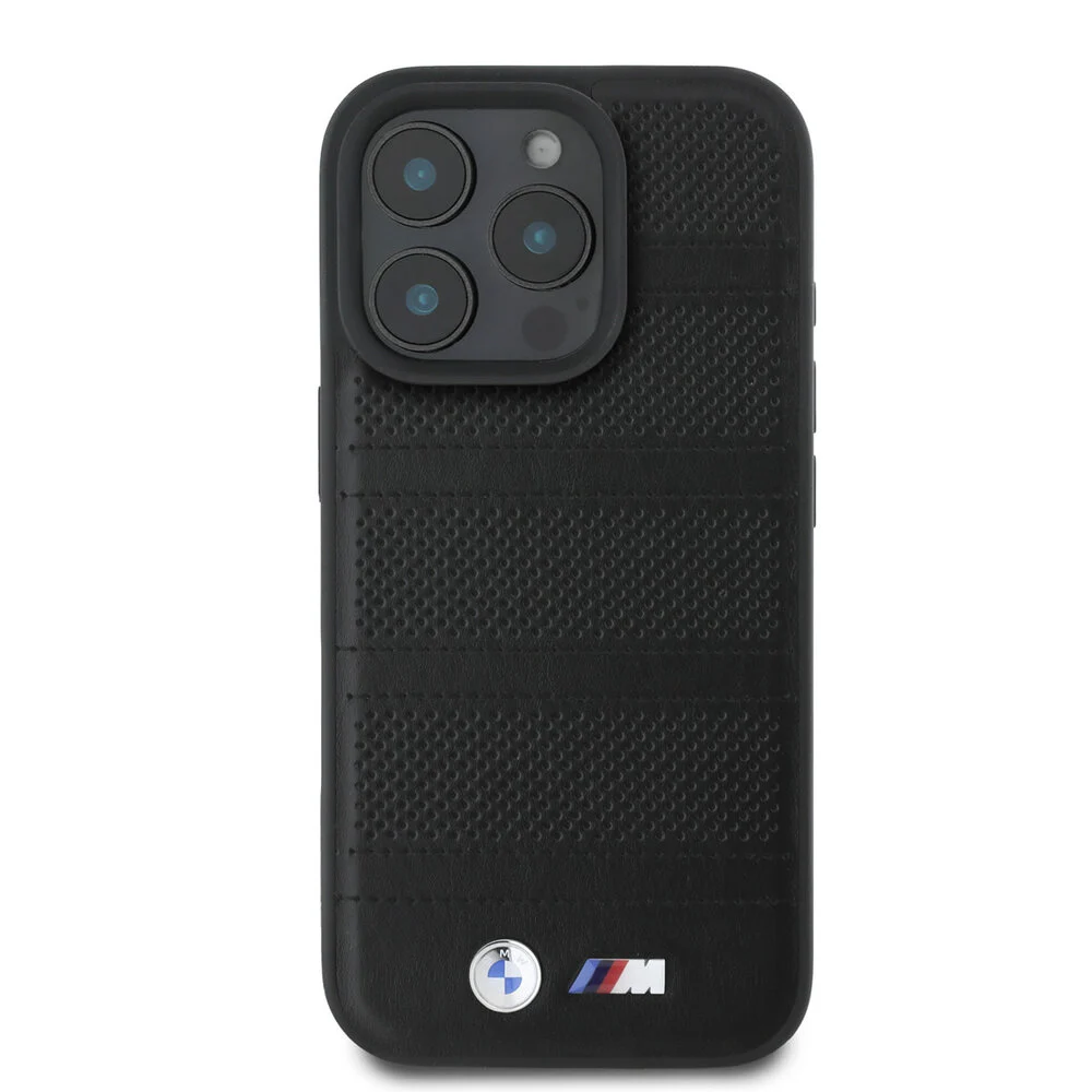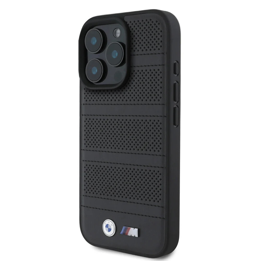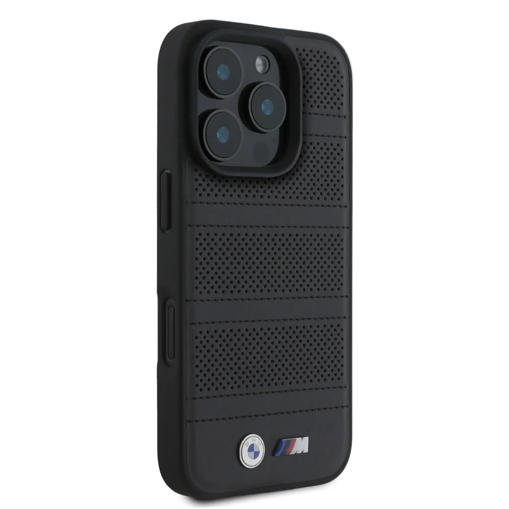 De BMW iPhone 16 Pro Max Back cover case biedt een perfecte combinatie van stijl en functionaliteit voor de veeleisende smartphone-gebruiker. Dit zwarte hoesje is ontworpen met een geperforeerd patroon en gestikte lijnen, wat zorgt voor een sportieve en premium uitstraling.