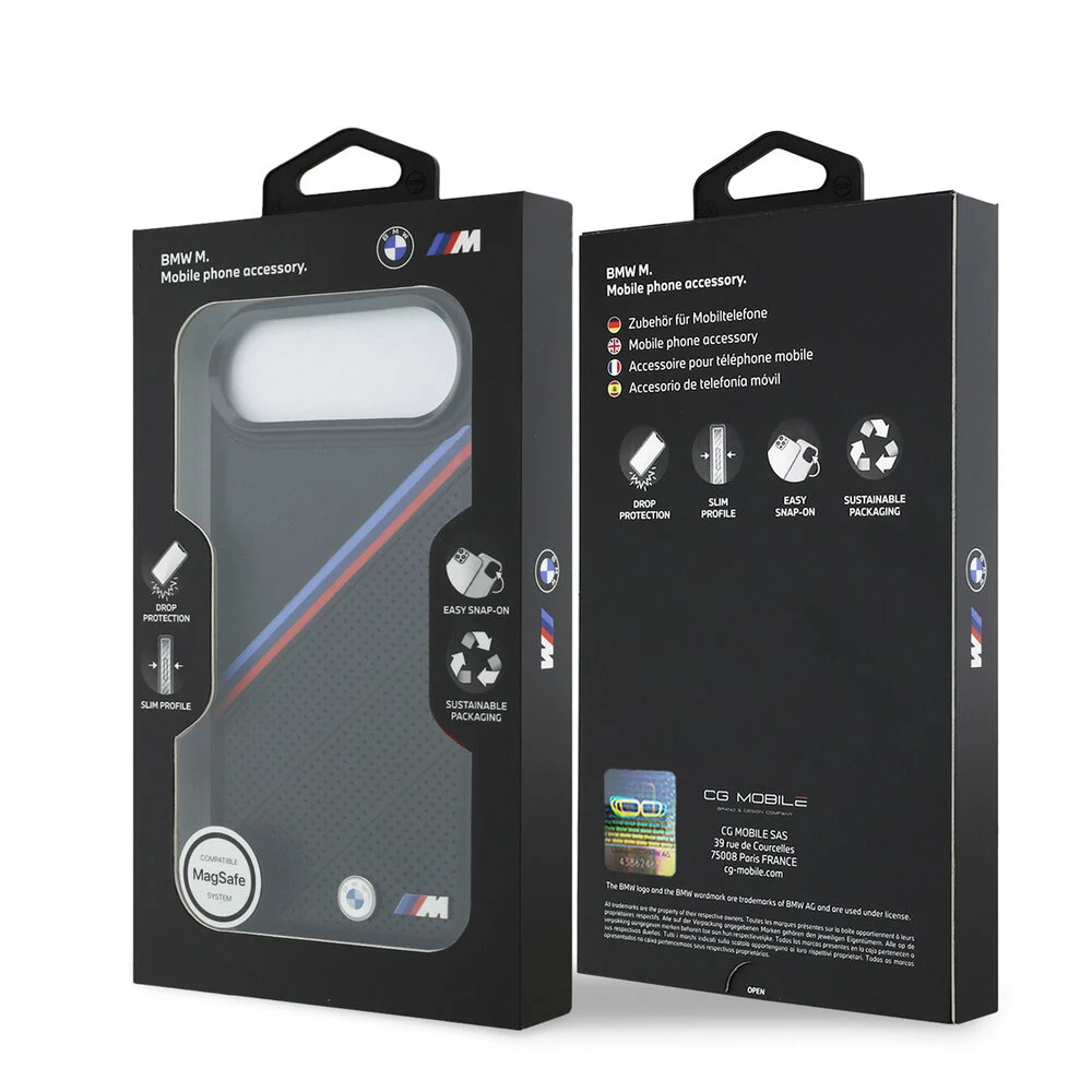 Met diagonale tricolore BMW M-strepen en een geperforeerde textuur voegt deze case niet alleen stijl toe, maar zorgt ook voor een stevige grip. Verhoogde randen rondom de camera en het scherm beschermen uw iPhone tegen krasjes en stoten, terwijl de slanke pasvorm ervoor zorgt dat het toestel eenvoudig in uw hand of zak past.