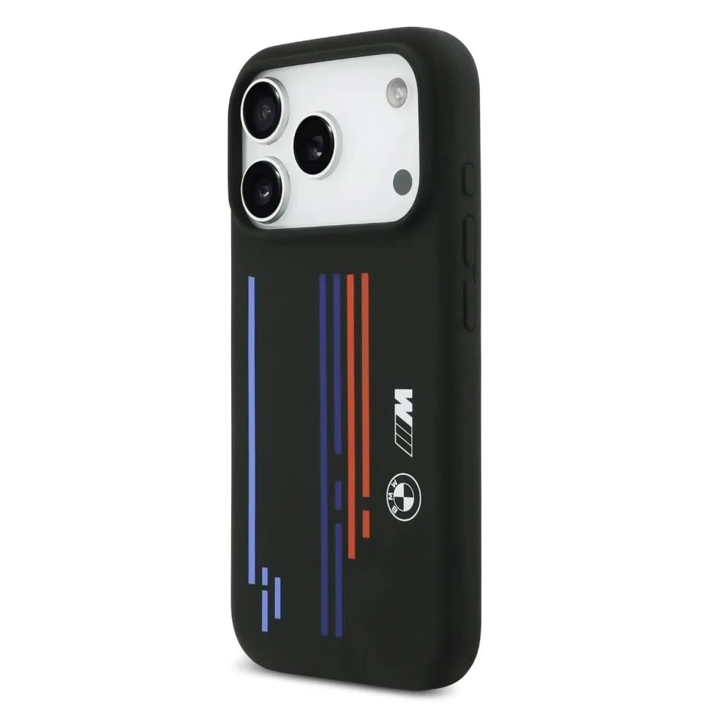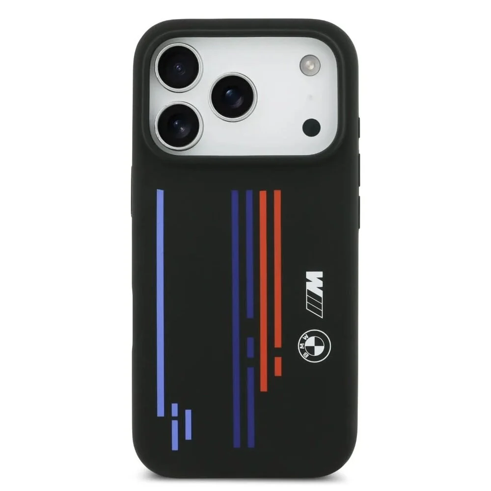De MagSafe – Liquid Silicone Case met een fraaie geprinte multi-tricolor van **BMW** is speciaal ontworpen voor de iPhone 17 Pro Max. Deze back cover case biedt een ideale combinatie van stijl en functionaliteit, perfect voor jouw winkelpersoneel die op zoek is naar zowel bescherming als een aantrekkelijk ontwerp.