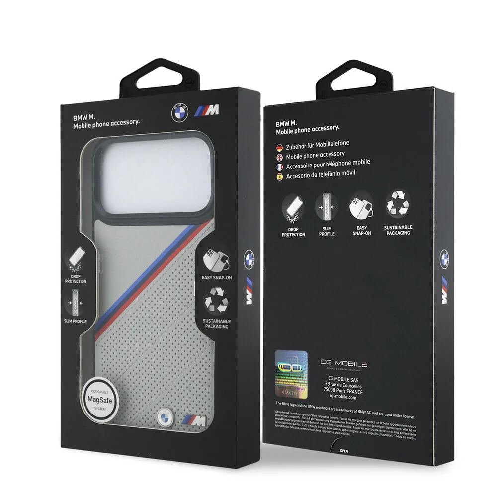De BMW MagSafe PU-leer hoes voor de iPhone 17 Pro Max biedt een perfecte combinatie van stijl en functionaliteit. Het innovatieve ontwerp met schuine, driekleurige strepen en metalen logo’s geeft uw smartphone een sportieve, premium uitstraling terwijl het gebruik van PU-leer en een schokabsorberende bumper samen zorgen voor duurzaamheid.