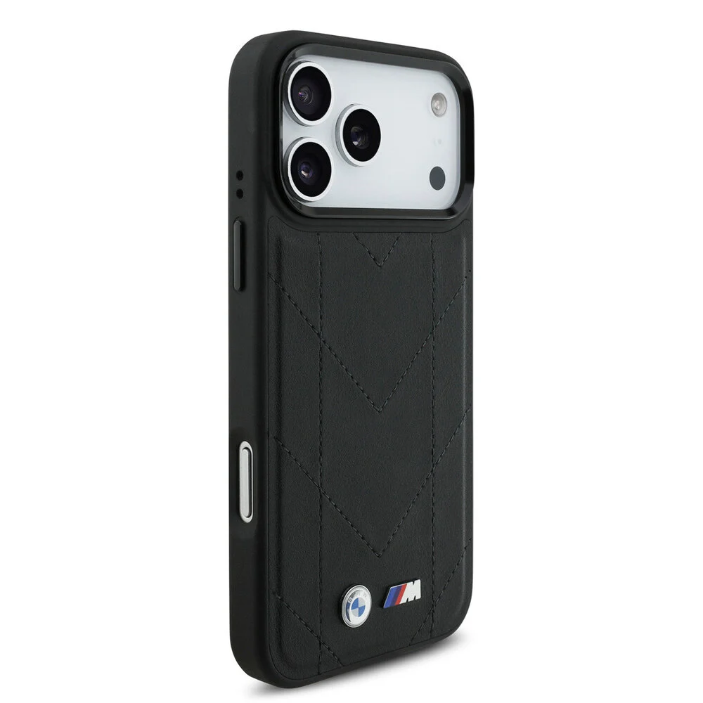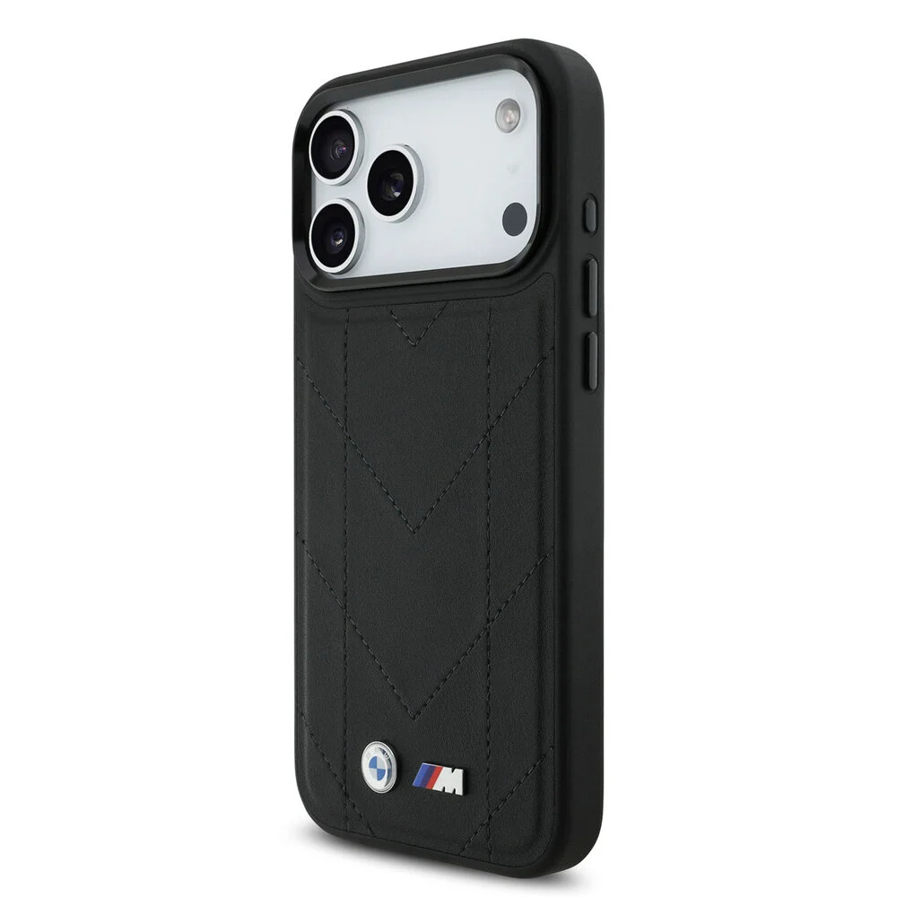 Dit luxe hoesje in zwart gewatteerd leer biedt niet alleen een premium uitstraling, maar is ook ontworpen voor optimale bescherming tegen dagelijks gebruik. Met nette stiksels en het iconische metalen M-logo straalt het een verfijnde stijl uit. Bovendien is het MagSafe-compatibel, waardoor er gemakkelijk accessoires kunnen worden toegevoegd. De verhoogde randen rond de camera zorgen voor extra veiligheid bij het neerleggen van het toestel, terwijl de precieze uitsparingen voor knoppen en poorten de functionaliteit garanderen.
