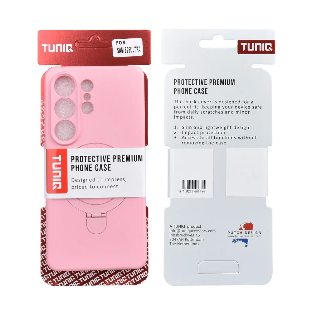 Met dit Galaxy S26 Ultra MagSafe hoesje met ringstand in Sakura Pink kies je voor een combinatie van stijl, gebruiksgemak en dagelijkse bescherming voor je smartphone.