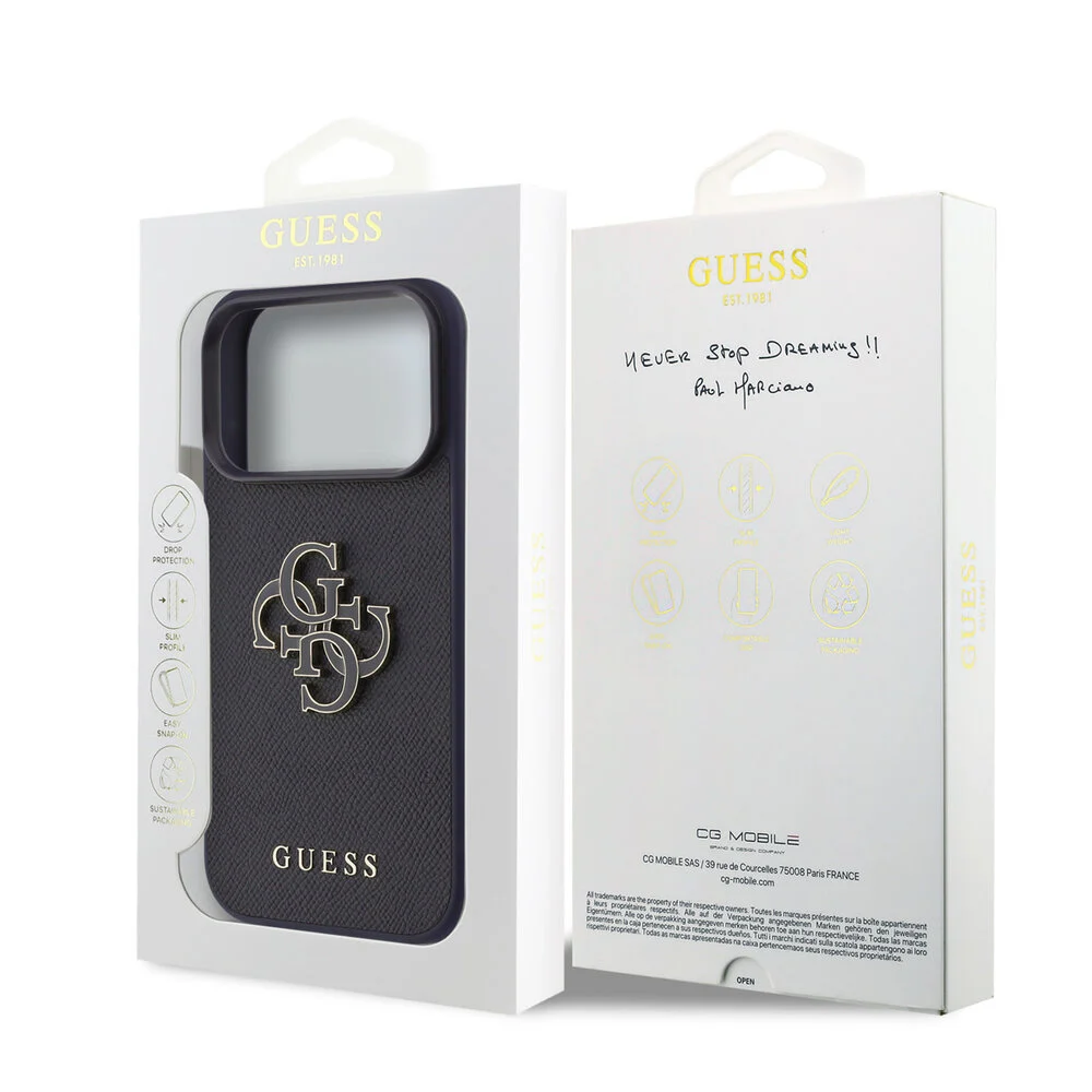 Dit Back cover case van Guess is geschikt voor 17 Pro en uitgevoerd in Navy. De specificatie MagSafe – Saffiano Leather – 4G Resin Logo sluit aan bij een professioneel accessoireassortiment voor winkels en webshops.
