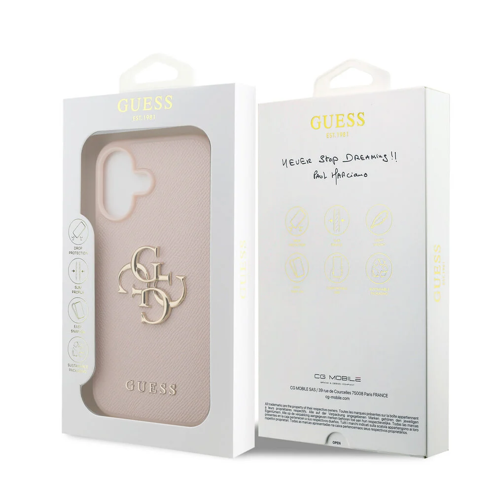 Geef uw klanten de kans om hun iPhone 17 op een stijlvolle manier te beschermen met het Guess iPhone 17 Backcover hoesje. Dit elegante roze hoesje, met zijn gegranuleerde textuur en opvallende grote goudkleurige 4G-logo, biedt niet alleen een luxe uitstraling, maar ook een uitstekende smartphone-bescherming.