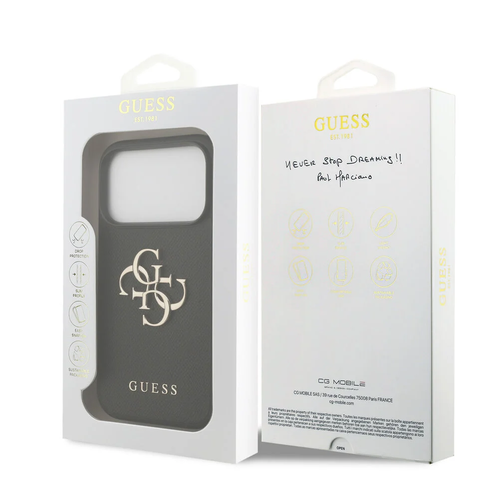 De Guess iPhone 17 Pro Backcover hoesje biedt niet alleen bescherming, maar ook een luxe uitstraling voor uw klanten. Met een gegranuleerde textuur en het opvallende goudkleurige 4G-logo is dit hoesje een echte blikvanger.