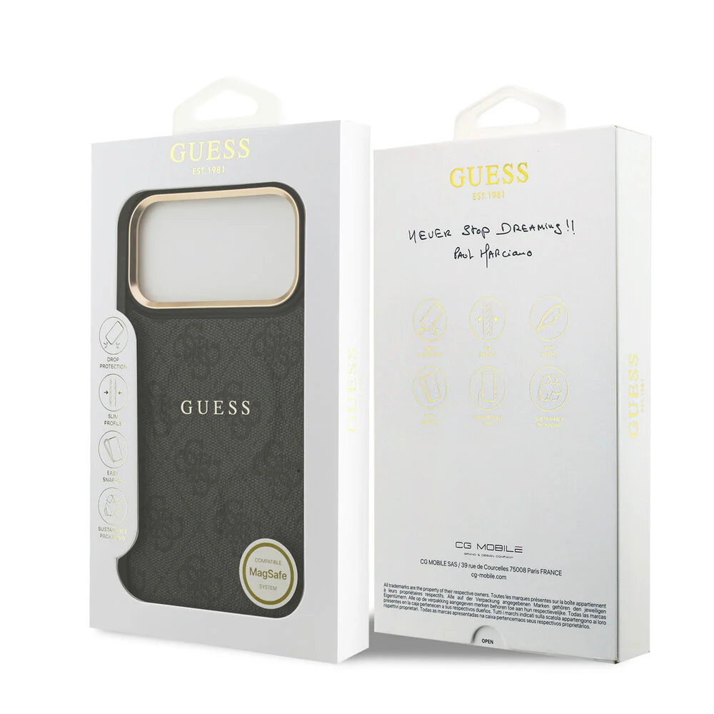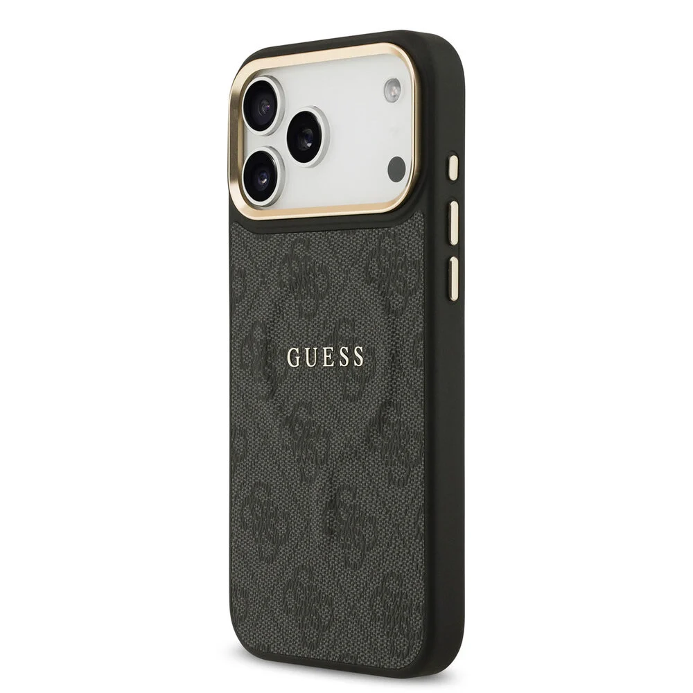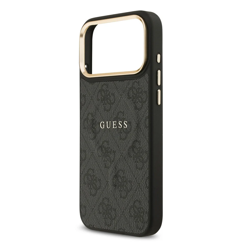 De Guess iPhone 17 Pro Max Backcover hoesje in zwart PU-leerlook straalt luxe uit met zijn subtiele 4G-monogram en glanzende gouden cameraringen. Dit slanke ontwerp is niet alleen esthetisch aantrekkelijk, maar ook praktisch, met verhoogde randen en nauwkeurige uitsparingen die de functionaliteit van de smartphone optimaliseren. De metallic knoppen zorgen voor een premium feel, terwijl het prominente Guess logo de exclusiviteit onderstreept.