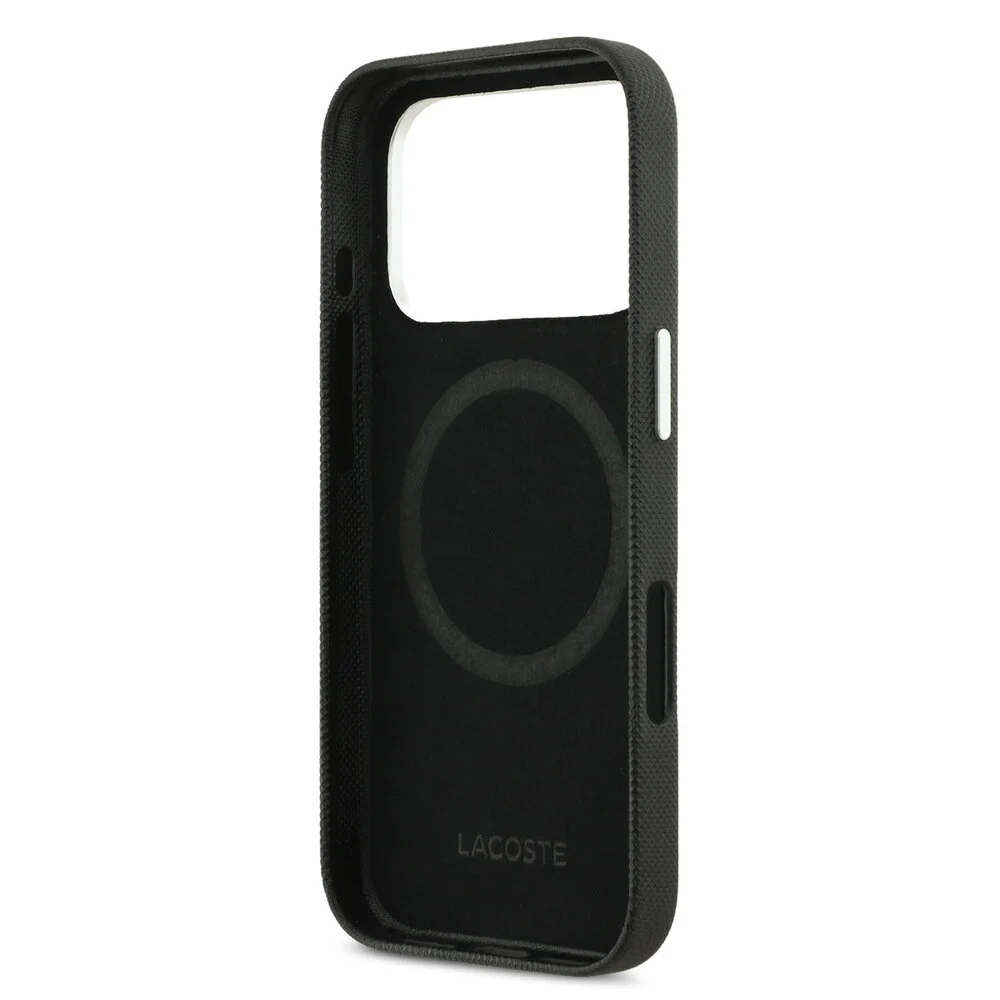 Het Lacoste iPhone 17 Pro Max hoesje biedt meer dan alleen bescherming. De strakke zwarte afwerking met metalen randen en het iconische Petit Piqué‑logo maken het een stijlvolle accessoire die bij elke gelegenheid past. Dankzij de MagSafe‑compatibiliteit kun je je telefoon eenvoudig draadloos opladen zonder het hoesje te verwijderen. De ingebouwde magneten zorgen dat je toestel stevig op MagSafe‑accessoires blijft zitten, ideaal voor dagelijks gebruik.