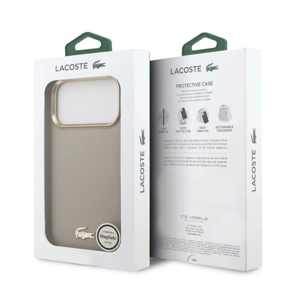 Geef je iPhone 17 Pro een luxe uitstraling én optimale bescherming met dit Lacoste MagSafe hoesje in een warme taupe kleur. Het subtiele croco-logo van Lacoste maakt het design tijdloos en elegant, perfect voor wie stijl en functionaliteit wil combineren.